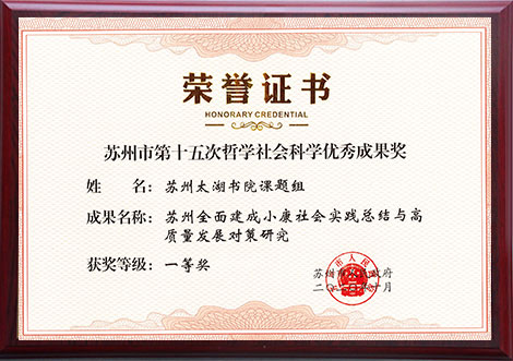 蘇州市第十五次哲學社會科學優秀成果獎一等獎