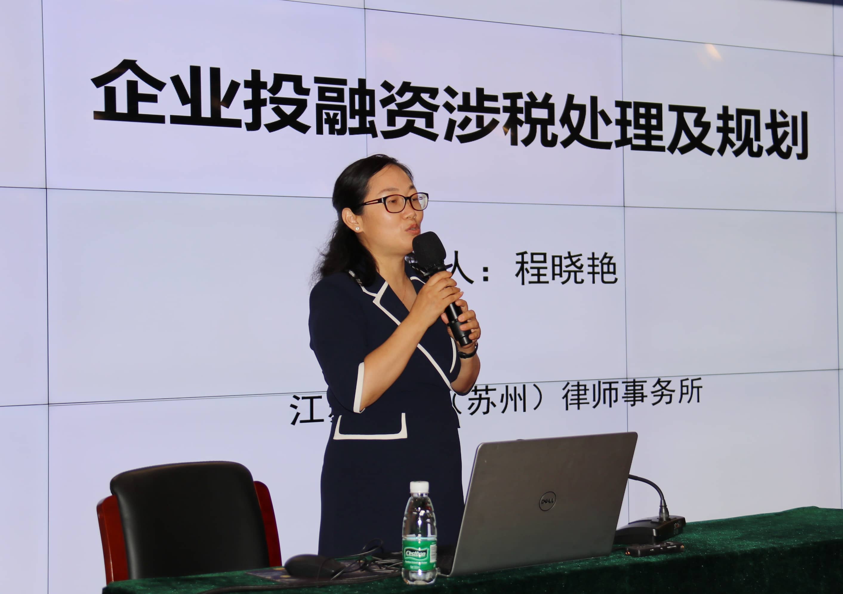 程曉艷律師主講的題目是《企業投資稅務處理及規劃》,她從企業投資涉稅考量要素、企業投融資涉稅處理及規劃、企業處置涉稅處理及規劃三大方面作了專業講解。通過分析電影《戰狼》的企業投資、涉稅處理,結合具體政策規定,講述了企業稅務規劃的目標和投資方式、持股方式、出資方式、投資主體、組織形式、注冊地址等企業投資涉稅考量的要素;運用技術成果投資入股的稅務處理及規劃、代持股稅務處理及規劃、股權轉讓終止、企業融資稅務處理及規劃等具體案例,講述了企業投融資涉稅處理過程中常見的問題和處理方式;從“股權轉讓”、“股息分配+股權轉讓”、“留存收益轉增資本、再股權轉讓”、“撤資增資”多個方案分析,尋求企業處置期涉稅問題處理的最優解。