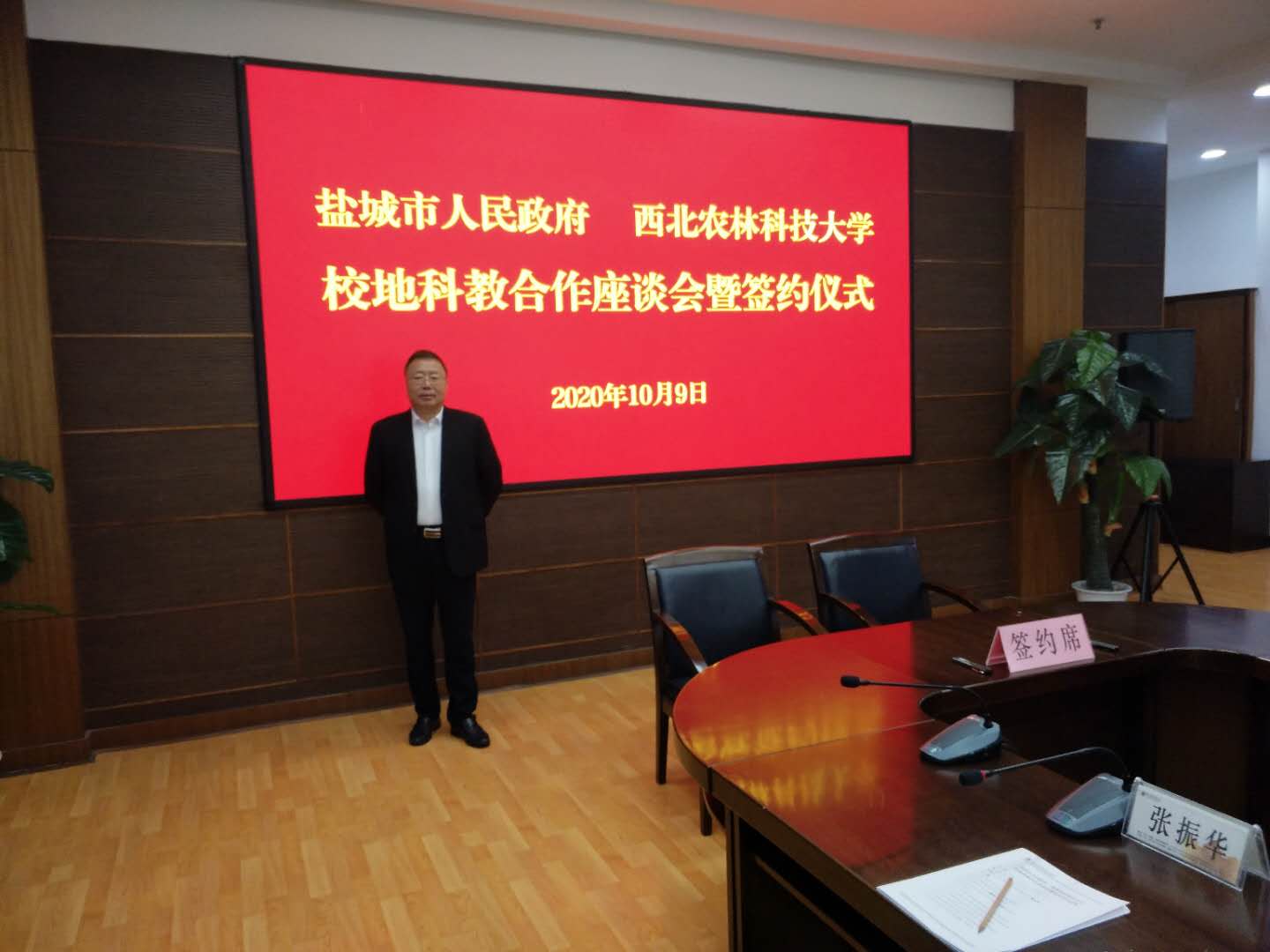 簽約活動(dòng)由西北農(nóng)林科技大學(xué)副校長(zhǎng)錢(qián)永華主持。鹽城市委書(shū)記戴源同志代表鹽城市委市政府首先為簽約活動(dòng)發(fā)表講話。他表示,在實(shí)現(xiàn)我國(guó)全面建成小康社會(huì)目標(biāo)和開(kāi)啟全面建設(shè)社會(huì)主義現(xiàn)代化國(guó)家新征程之際,雙方舉行校地深度合作的簽約儀式,將為鹽城市和西北農(nóng)林科技大學(xué)進(jìn)一步展開(kāi)多層次、多形式、多領(lǐng)域的校地合作,構(gòu)建全面戰(zhàn)略合作關(guān)系和長(zhǎng)效合作機(jī)制,促進(jìn)未來(lái)鹽城市農(nóng)業(yè)龍頭企業(yè)的創(chuàng)新發(fā)展和地方經(jīng)濟(jì)社會(huì)的高質(zhì)量發(fā)展提供了新的途徑和活力。今后雙方將優(yōu)勢(shì)互補(bǔ)、資源共享,協(xié)同促進(jìn)校地和校企的創(chuàng)新發(fā)展。西北農(nóng)林科技大學(xué)校長(zhǎng)吳普特在致辭中表示,學(xué)校與鹽城市和鹽城企業(yè)開(kāi)展合作,既符合社會(huì)和企業(yè)對(duì)人才的需求,為企業(yè)提供了充足的人才供給,同時(shí)也為學(xué)校培養(yǎng)人才提供了可靠的創(chuàng)新實(shí)踐平臺(tái),雙方合作簽約必將促進(jìn)學(xué)校教育事業(yè)的可持續(xù)發(fā)展。
