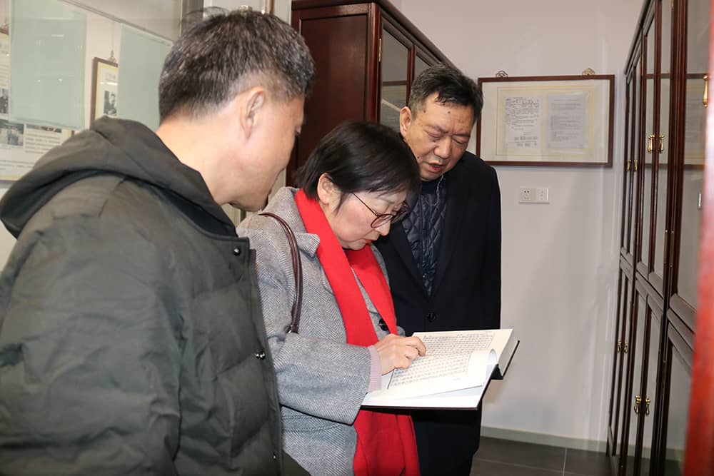 俞菊副主席一行在書院領導的陪同下,參觀了太湖書院文博館、名家藏書館、非遺古建館和允中藝術館,聽取了書院領導對各場館的建設情況以及館內藏書藏品的詳細介紹。