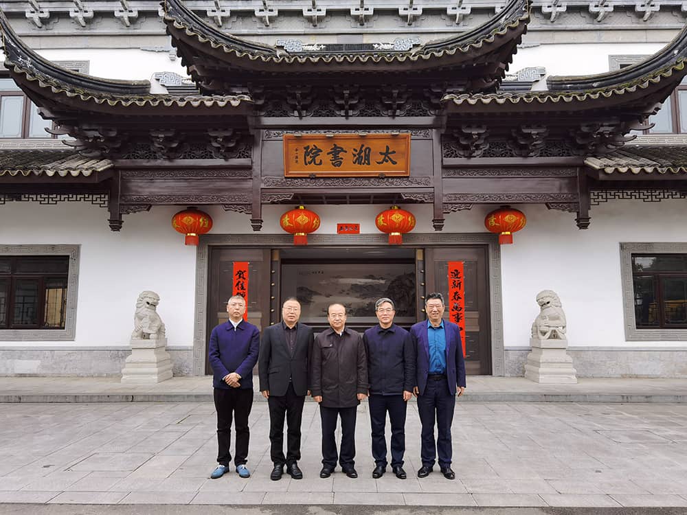 2月28日下午,江蘇省文聯副主席王建在蘇州市社科聯主席劉伯高的陪同下蒞臨太湖書院考察指導,江蘇乾寶科技發展集團有限公司董事長、太湖書院理事長王躍程,集團執行總裁、書院秘書長王翼寧,集團副總裁馬向農,太湖書院執行院長王建明等人熱情接待并陪同考察。