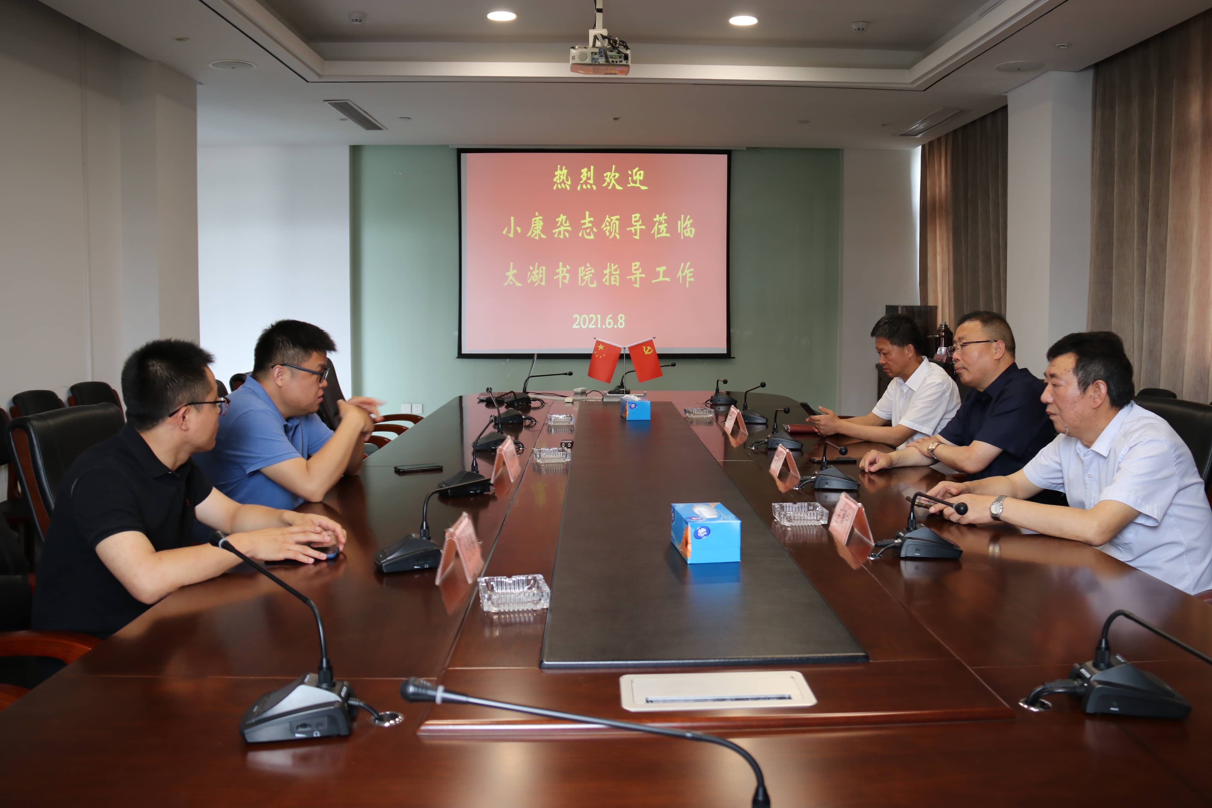 6月8日下午,中共中央機關刊物《求是》雜志子刊《小康》雜志社編委、政務大數據中心主任張志一行到訪太湖書院,太湖書院理事長王躍程、執行院長王建明、秘書長王翼寧等人熱情接待并參加座談。