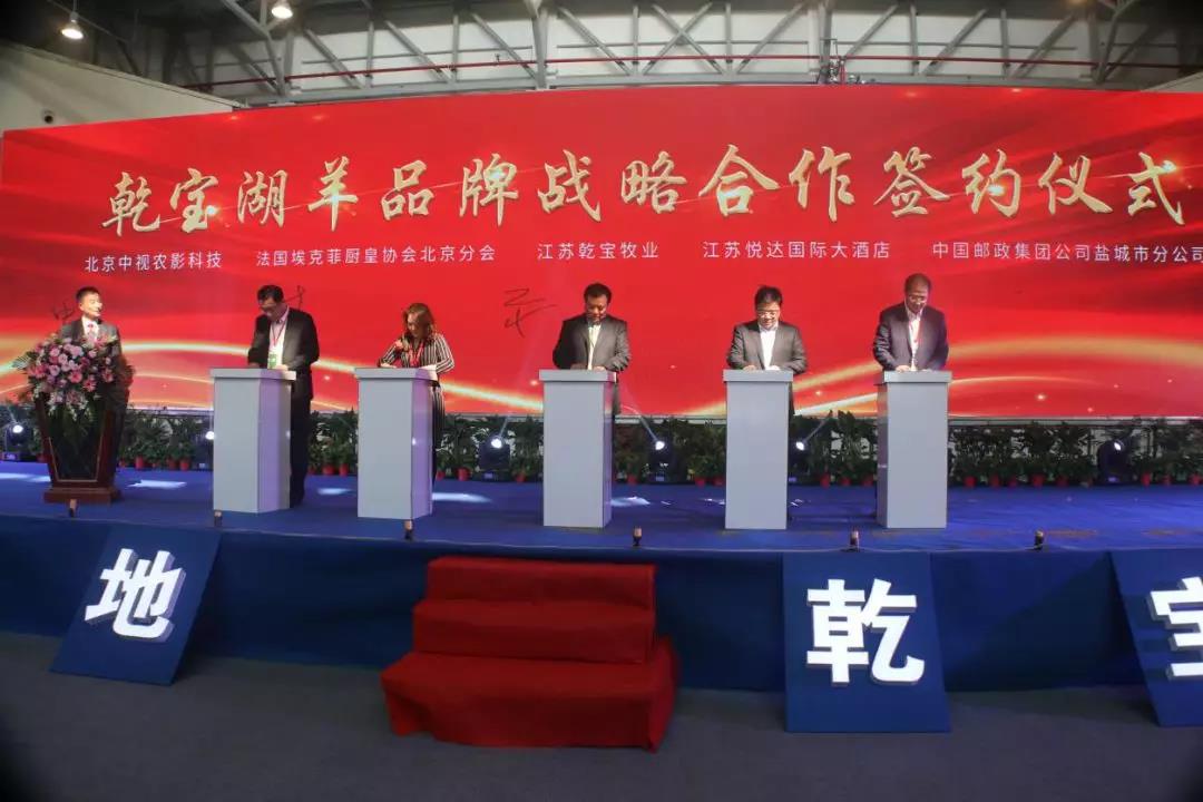為深入挖掘乾寶湖羊文化、進(jìn)一步研發(fā)和打造乾寶湖羊羊肉產(chǎn)品、不斷提升乾寶湖羊品牌在國內(nèi)外消費(fèi)市場中的影響力,由江蘇乾寶牧業(yè)有限公司與北京中視農(nóng)影科技有限公司、法國埃克菲廚皇協(xié)會(huì)北京分會(huì)、悅達(dá)國際大酒店、中國郵政集團(tuán)公司鹽城分公司共同簽署戰(zhàn)略協(xié)議。