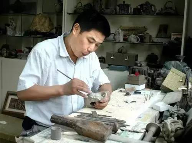 ?????? 蔡云娣自幼喜愛美術,在祖父及前輩的雕刻藝術熏陶下,執著地追求石雕藝術,在繼承祖父雕刻中國四大名硯的基礎上,于80年代初創立了石壺雕刻的新門類,辛勤耕耘了二十多年,形成了自己獨特的藝術風格。