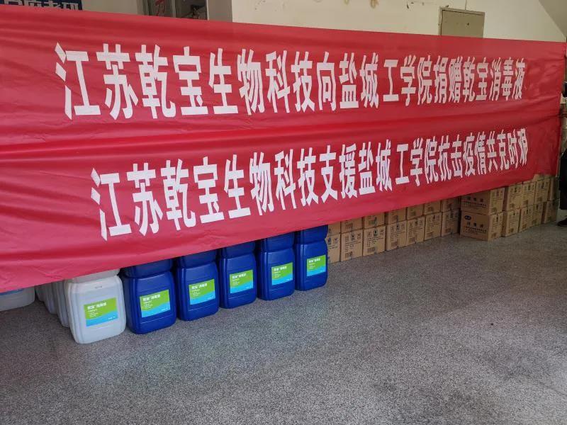 據悉,江蘇乾寶生物科技有限公司專業致力于安全綠色消毒殺菌產品的研究和開發,生產的“乾寶”消毒液獨創核心技術,對人體皮膚和粘膜無刺激,可直接用于手和物體表面,可強效殺滅細菌、真菌等致病微生物。江蘇乾寶生物科技有限公司主動承擔社會責任,積極參與社會公益,為抗擊疫情做貢獻,已向湖北、江蘇、四川等地醫療系統、教育系統、政府機關、部隊、地方紅十字會等,以及巴基斯坦、盧旺達等國家捐贈了170噸的“乾寶”消毒液。此次,江蘇乾寶生物科技有限公司向學校無償捐贈5噸的消毒液價值20萬元。