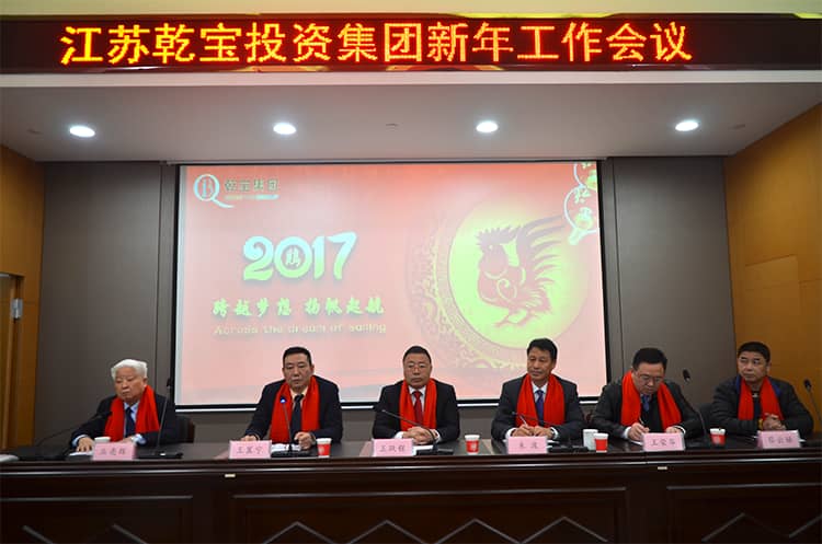 2017年2月11日下午,江蘇乾寶投資集團召開了新年工作會議,集團中層以上管理人員參加了會議。這次會議是在2016年集團改革發展、轉型升級取得較好成績,但面臨任務十分繁重的形勢下召開的。會前組織了座談,大家回顧工作,交流體會,建言獻策,拉近了各板塊間的距離。會上,10個部門的負責人圍繞中心議題,介紹了經驗和體會。集團王躍程董事長作了工作報告,全面回顧總結了2016年工作,研究部署了2017年工作任務。講話高屋建瓴,總攬全局,對于動員全體員工解放思想,堅定信心,明確目標,開拓進取,推動集團可持續發展,具有十分重要的意義。