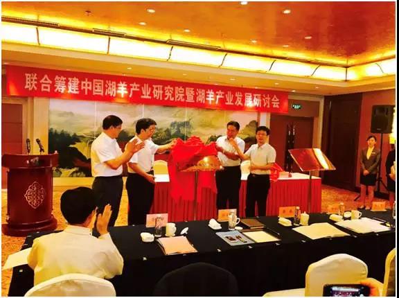 中國畜牧總站楊振海站長、中國畜牧協會李希榮會長、鹽城市人民政府蔣巍副市長、鹽城市亭湖區人民政府張宏春區長為中國湖羊產業研究院和鹽城聯合創新中心揭牌